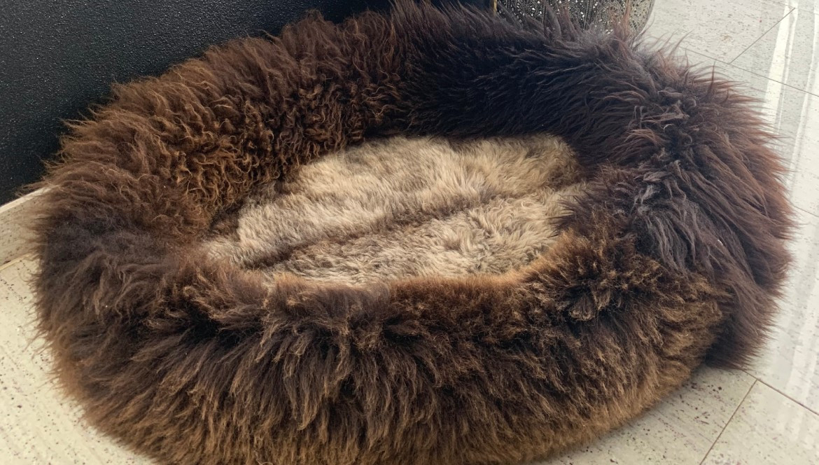 Das elegante Bett aus Schafwolle sorgt für einen hohen Liegekomfort für Hund und Katze.